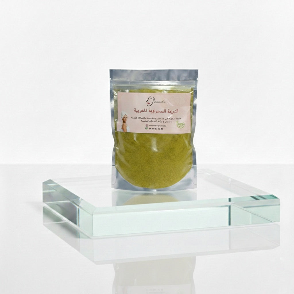 A traditional Moroccan desert scrub combining 11 carefully selected natural herbs with luxurious henna. This traditional blend naturally and effectively whitens the skin, helping remove skin pigmentation and dark spots. A formula known for centuries in the Moroccan desert, providing noticeable results with regular use. Suitable for all skin types and free from harmful chemicals
